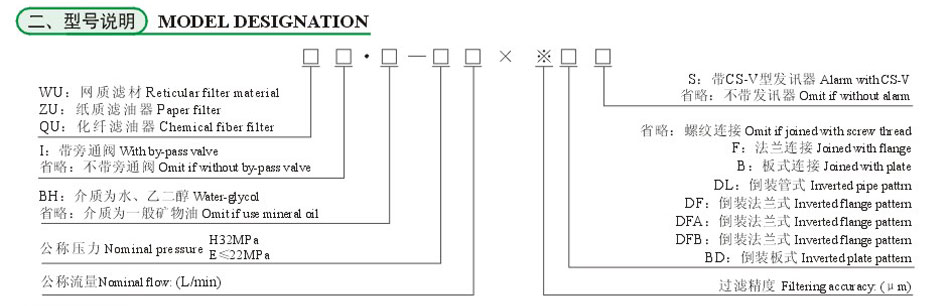 ZU-H壓力管力過濾器安裝在液壓系統的壓力管路上,用以濾除液壓油中混入的機械雜質和液壓油本身化學變化所產生的膠質、瀝清質、炭渣質等,從而防止閥芯卡死、節流小孔縫隙和阻尼孔的堵塞以及液壓元件過快磨損等故障的發生